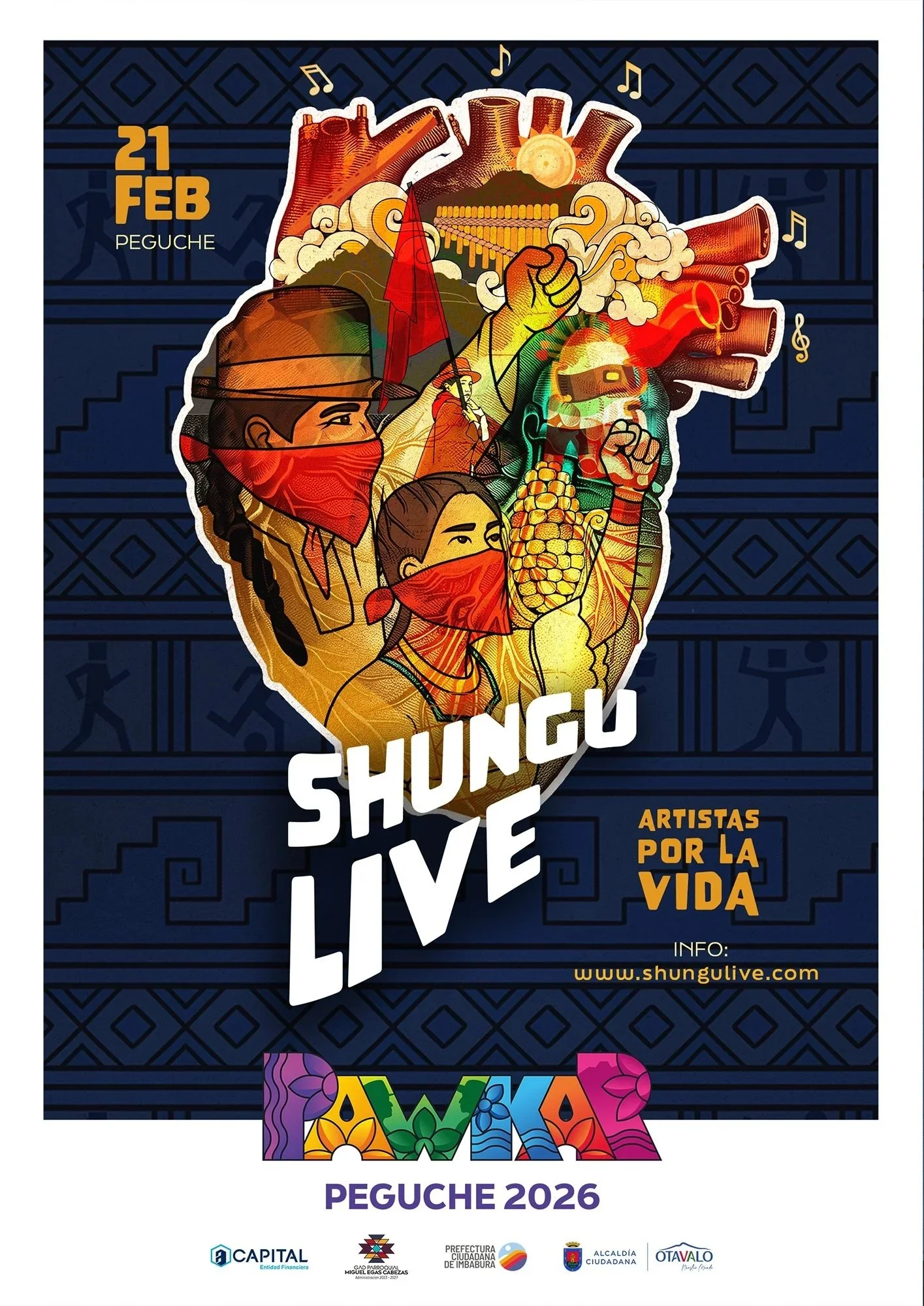 ShunguLive, Artistas por la Vida, es una iniciativa solidaria cuyo principal objetivo es recaudar fondos económicos destinados a apoyar a los afectados, heridos y familiares de los fallecidos durante el último paro ocurrido en Ecuador. Este proyecto nace de la unión y compromiso de la comunidad artístico musical de Otavalo, en colaboración con el Pawkar Peguche 2026 y diversos actores sociales de la comunidad.